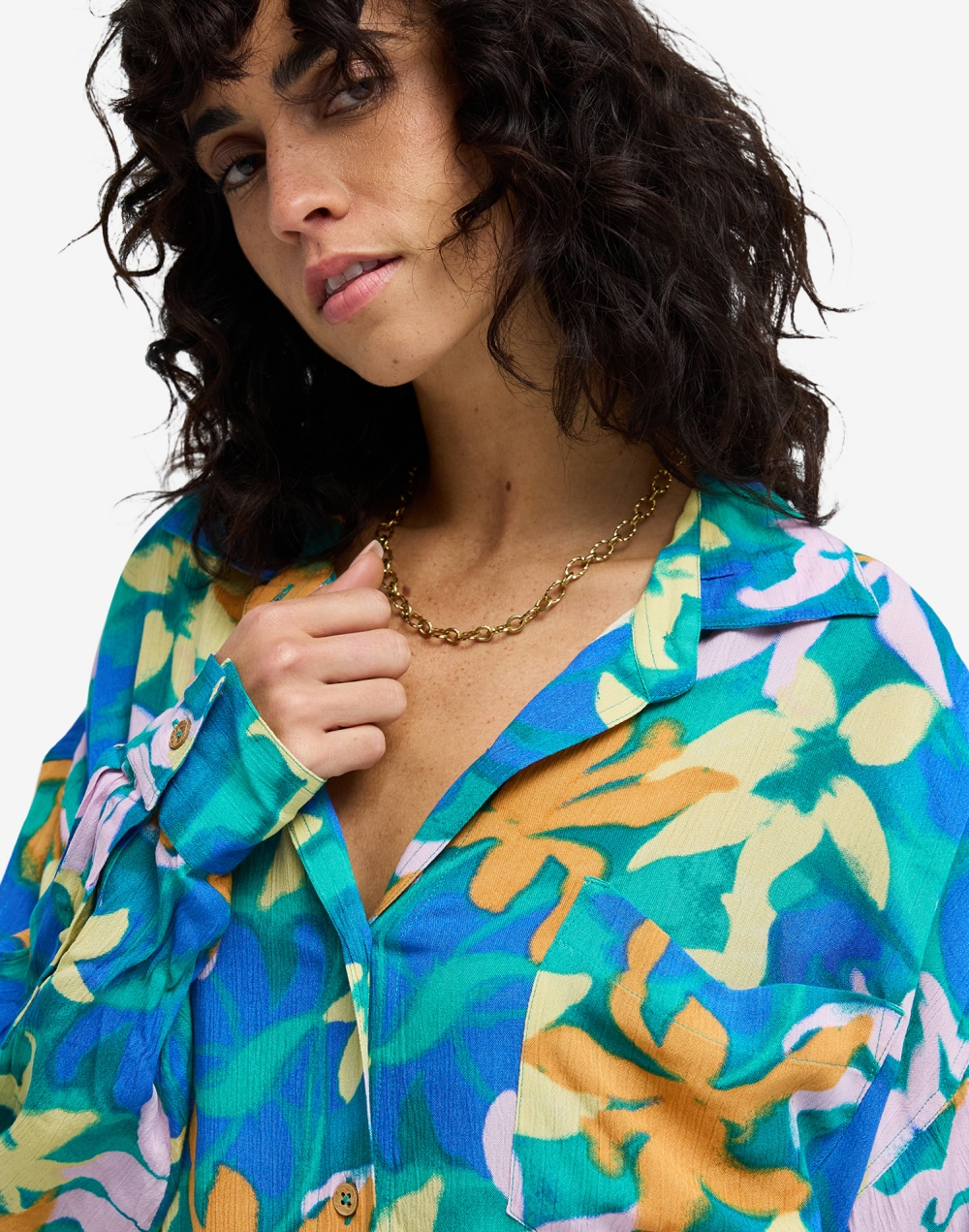 빌라봉 여성 SUMMER LOVE 오버핏 버튼 다운 커버업 셔츠 (WG11SH065BL6)